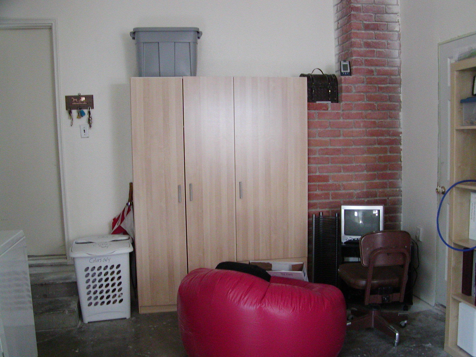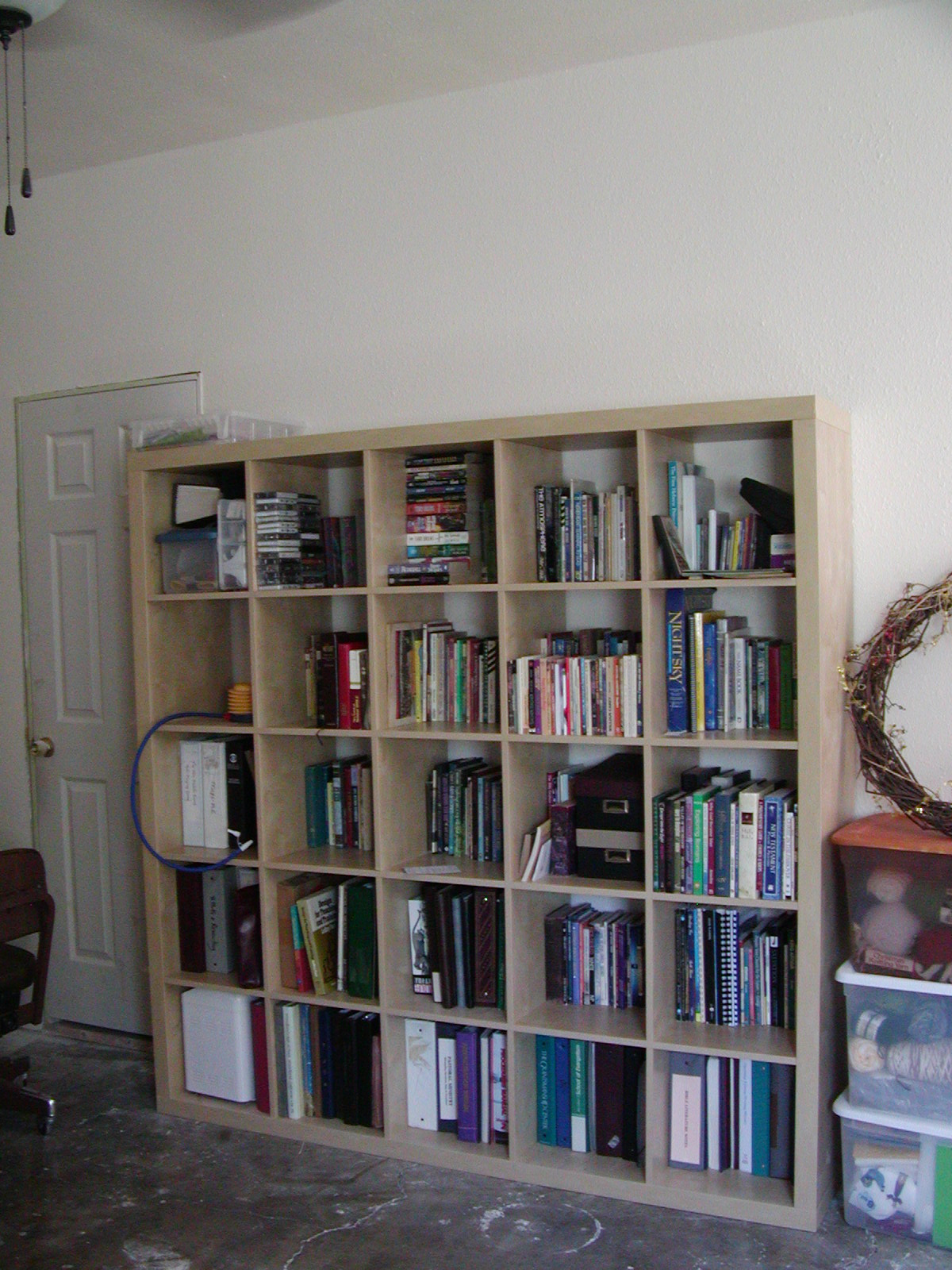 Ignore the messy bookshelf, it’s going out in the rumpus room when it’s ready for moving in. Right now Hubs and boys are laying insulation and creating an attic floor in the garage for storage. Then Thursday a couple of guys are coming to build a patio in the back yard so we can have some shade. The next week these same guys are going to tape, mud and texture our rumpus room walls. Then we’ll paint and we can move stuff in.