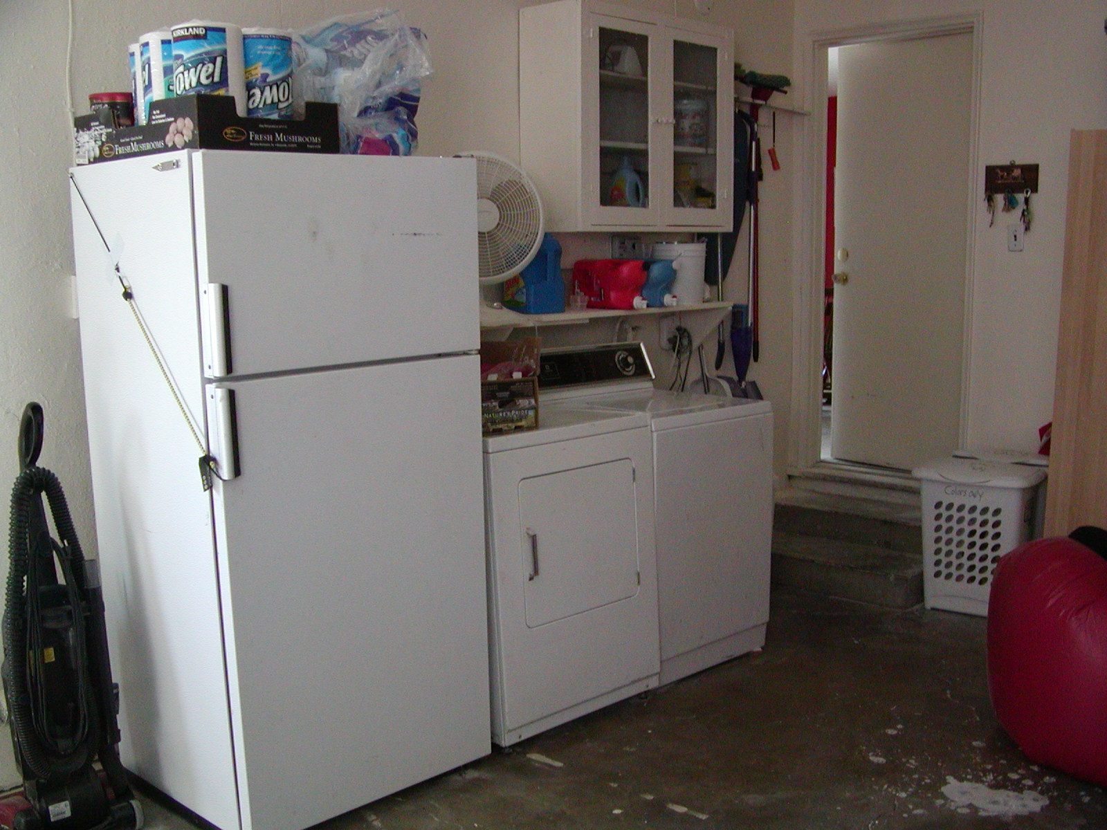 But really, this was after the first demo. There was a very small room in the garage that we took out. See the small cupboard on the back wall (with glass doors)? It’s the only thing that remained.