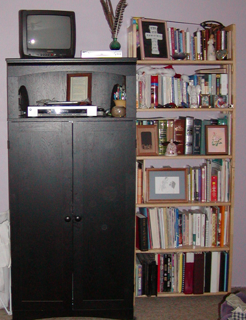Also we totally scored at Ikea yesterday. Not only did we get my corner hutch but also a great wardrobe for Eric’s costumes and the bookshelves we wanted in the as-is section – so at least 40% off the original price! Yeah!! I love a bargain!