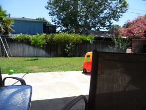 Same picture at 5x zoom – you might have to click to see my windchime.