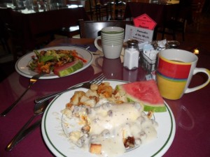 Dinner – outstanding! Eric had to eat his burger in layers!