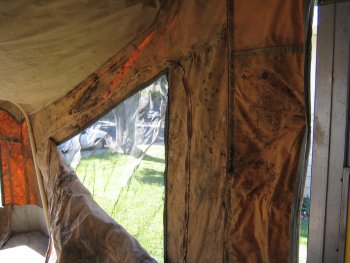 I hope you can get all the mildew out. We had an old one once, that the previous owner didn’t take care of… Our problem was that the fabric pretty much disintegrated. We could have bought a new canvas, but couldn’t afford the $1200 price tag. *sighs* We finally just got rid of it… But we did enjoy quite a few camping trips before then.