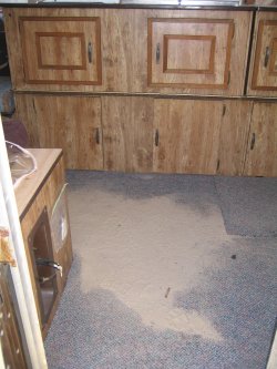 The camper obviously last went to the beach – we don’t think they tried to clean it out at all afterwards. š