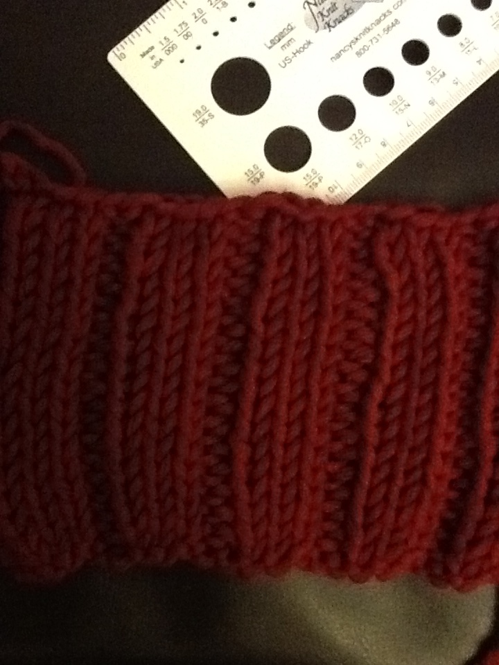 This is the swatch for a sweater for me in the cushiest yarn! I’m using size 11 needles and before blocking it was just a little bit too small. After blocking it was perfect!