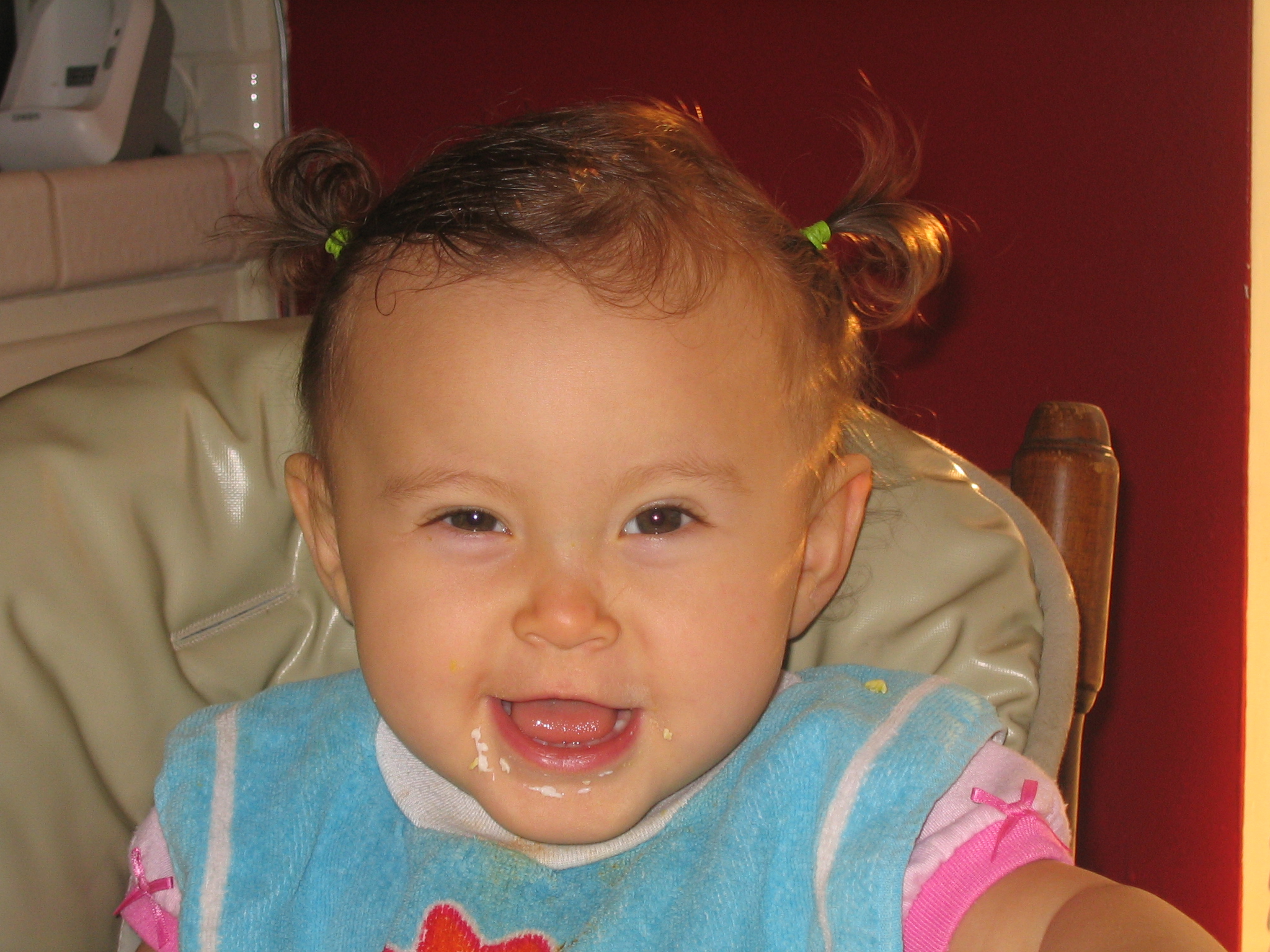 3. Awwww……that didn’t take long! You’ve had a girl child how long, and already piggy tails!